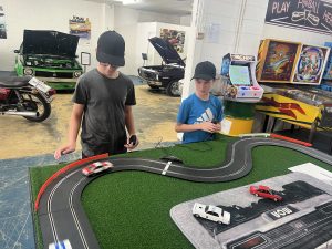 Challenge friends on our massive slot car racing track.